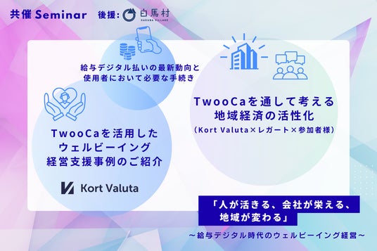 株式会社KortValuta株式会社 Kort Valuta (本社:東京都渋谷区、代表取締役 柴田秀樹 以下、当社)は、社会保険労務士法人レガート(所在地:長野県松本市、代表:傘木聡子、以下「レガート」)と共同で、2026年4月27日(月)に白馬村内事業者向けセミナー「人が活きる、会社が栄える、地域が変わる ~給与デジタル時代のウェルビーイング経営~」を開催することをお知らせいたします。