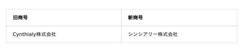 事業の広がりとともに、より幅広い方々に当社を知っていただく機会が増える中で、社名をより覚えやすく、親しんでいただける表記にすることで、ブランド認知の一層の向上を図ることを目的として、商号を変更いたしました。当社の社名「Cynthialy」に込めた「誠実に(Sincerely)」という想いはそのままに、日本語表記をカタカナの「シンシアリー」に刷新いたします。