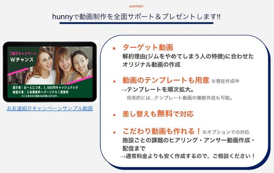 株式会社hunny(本社:東京都文京区、代表取締役:古澤伸一、以下「hunny」)が展開するデジタルサイネージ広告 xAdbox(アドボックス、以下「アドボックス」)は、スポーツジム・フィットネスクラブ様向けのサービス「GYM xAdbox」の、設置施設様を募集いたします。