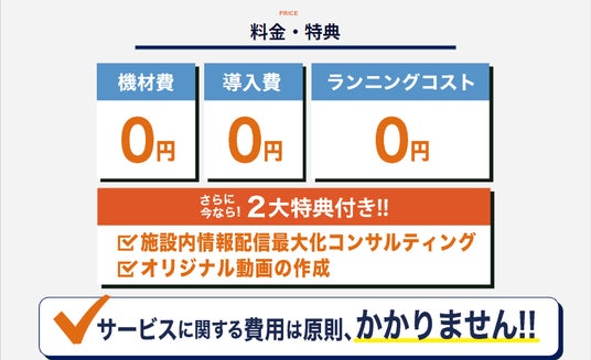 サイネージを無料で導入できるだけでなく、施設のお知らせ配信を最大限有効活用することで、