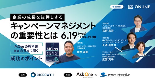 クリエイティブサーベイ社と共催で、【企業の成長を後押しする「キャンペーンマネジメント」の重要性とは?~『MOpsの教科書』著者丸井氏に聞く、成功のポイント~】を、6月19日に開催します。