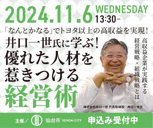 井口一世氏を基調講演講師に迎えた経営者向けセミナー「SENDAI CORE COMPANYシンポジウム」-仙台市主催、2024年11月6日(水)13:30~開催