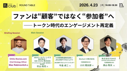 【第3期 第9回ラウンドテーブル】を2026年4月23日(木)に開催予定です。「N.Avenue club」には現在200社以上の企業が加盟し、「Research」「Networking」「PR」の3軸で、大手企業を中心とする法人会員のWeb3ビジネス開発を支援しています。毎月クローズドな研究会として開催されるラウンドテーブルでは、テーマに応じた国内外の専門家を招き、企業間の活発な議論形成と共創機会を提供しています。