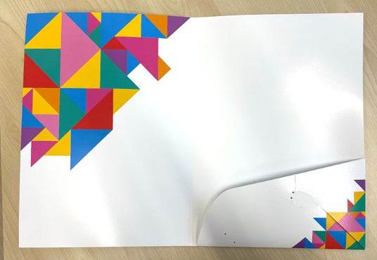 疑似エンボスを施した「紙製ポケットフォルダー」のサンプルもお送りいたします。