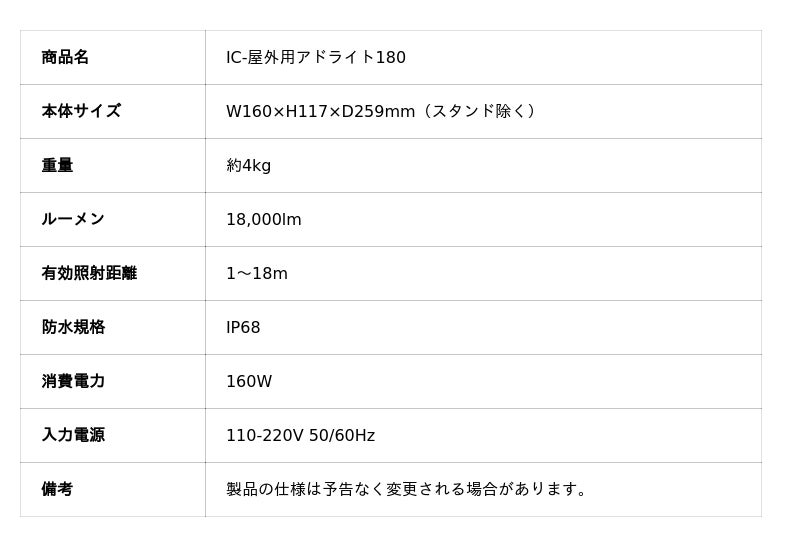 【IC-屋外用アドライト180】の特長