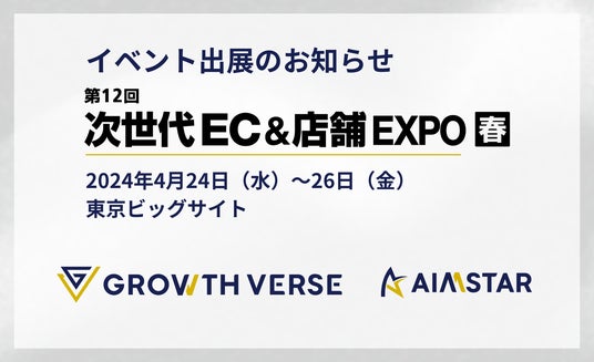 株式会社GROWTH VERSE(本社:東京都豊島区、代表取締役CEO:渡部 知博、代表取締役CTO:南野 充則)は、2024年4月24日(水)~26日(金)に東京ビッグサイトで開催される「第33回Japan IT Week春」内の「次世代EC&店舗EXPO」に出展いたします。