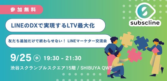 株式会社サブスクライン(本社:東京都渋谷区、代表取締役:石川勝己)は、2024年9月25日(水) 19:30に渋谷駅直結の渋谷スクランブルスクエア15F(SHIBUYA QWS内)にて「LINEのDXで実現するLTV最大化:友だち追加だけで終わらせない!LINEマーケター交流会」と題し、参加無料の交流会を開催します。
