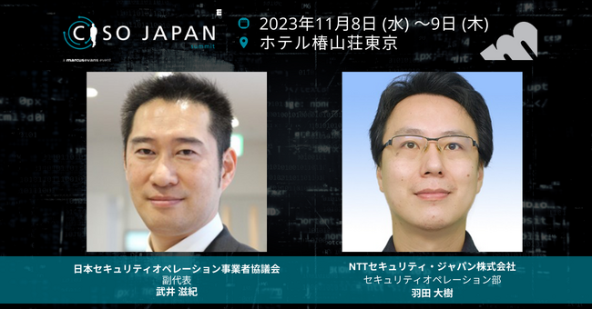 マーカス・エバンズ・イベント・ジャパン・リミテッド (本社: 英国/ 日本支社代表: 雪下 大輔、以下「マーカスエバンズ」) は情報セキュリティ部門のビジネスサミット『CISO Japan Summit 2023』での日本セキュリティオペレーション事業者協議会の武井 滋紀氏とNTTセキュリティ・ジャパン株式会社の羽田 大樹氏の単独講演を発表しました。 武井氏には、企業や組織の世界共通のフレームワーク”ITU-T勧告 X.1060 ”について、羽田氏には、セキュリティの脆弱性を攻撃者視点からお話しいただきます。