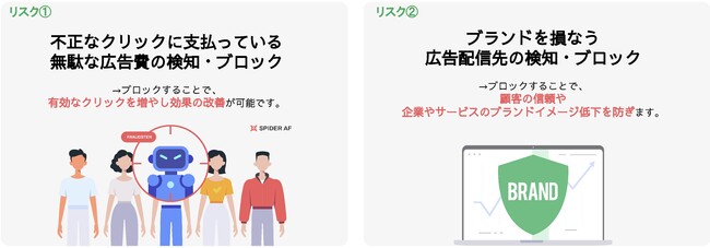 Spider AFではアドフラウド被害額の無料診断が可能となっており、誰でも簡単にアドフラウド対策を行えるようタグ設置だけで自動で検知・ブロックすることができます。提供開始以降、広告主様を初め、代理店様、アドネットワーク事業者様まで広くご利用頂いています。 「Spider AF」は、デジタル広告業界への信頼を高める世界最高水準の認証機関「Trustworthy Accountability Group(TAG)」の不正防止部門から日本及びAPACで初めて認証を取得しています。(※3)