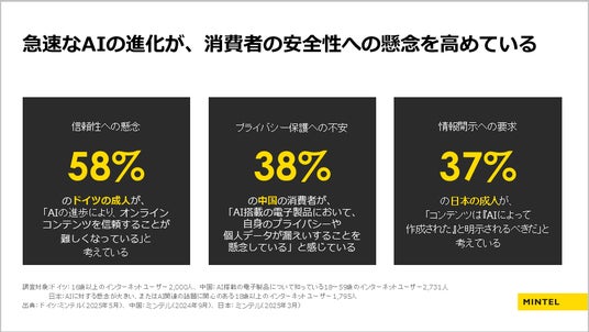 ミンテルの調査によると、AIに対する以下のような消費者意識が読み取れます。