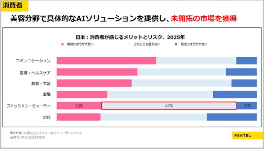 3.日本市場でのAI活用の機会:大きな“ホワイトスペース”日本においてミンテルが行った調査で、「様々な分野でのAI導入に対する期待と不安」を尋ねると、