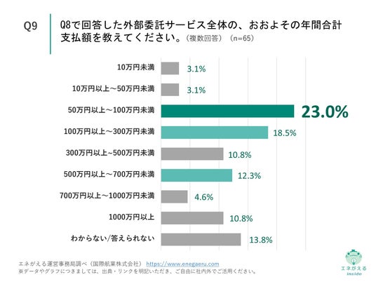 「Q9.Q8で回答した外部委託サービス全体の、おおよその年間合計支払額を教えてください。」(n=65)と質問したところ、