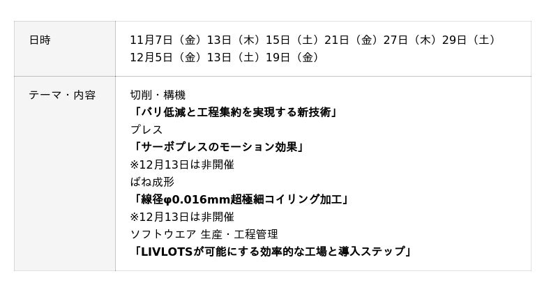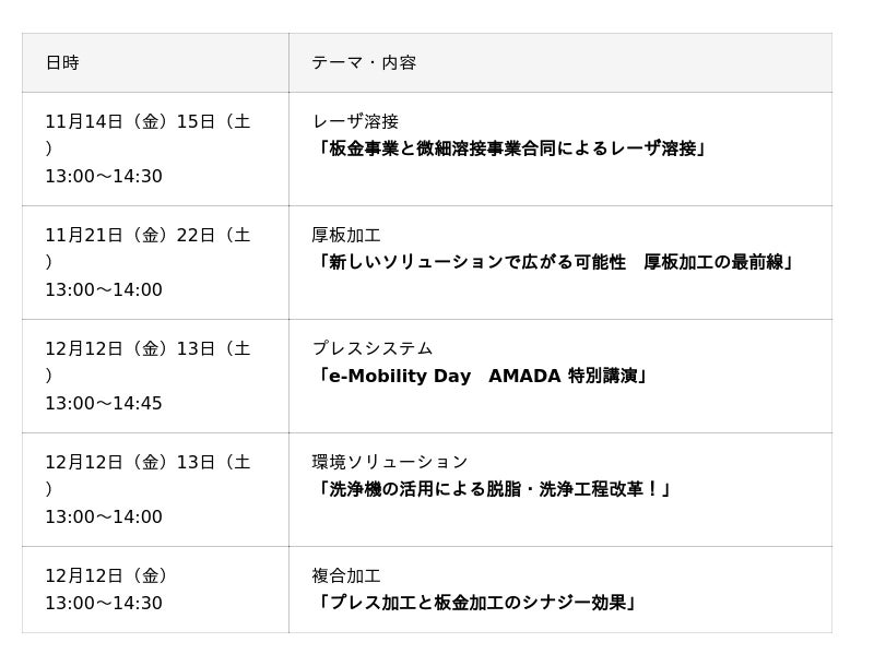 ※本イベントは、事前予約制です。お問い合わせは、お近くのアマダグループ営業所までご連絡ください。