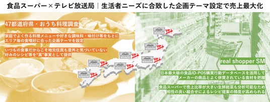 食品・飲料メーカーにとって、販売に苦戦しているエリアの食品スーパーとテレビ放送局によるタイアップ企画は、有効な販促施策として機能してきました。しかし、エリア毎に食文化・食嗜好が異なるためエリア毎の生活者ニーズを把握することが難しく、タイアップ企画立案の課題となっています。