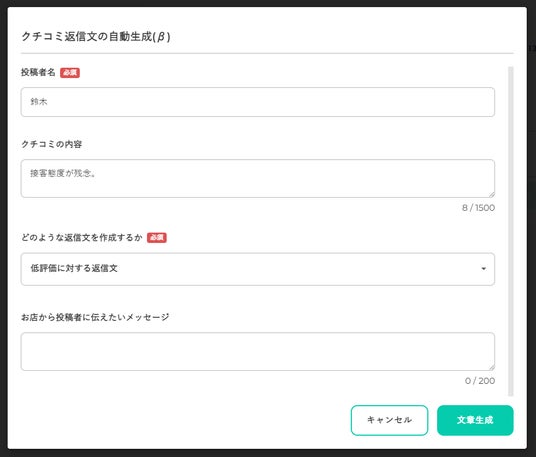 ・クチコミ毎に返信内容を考えるため手間が掛かる