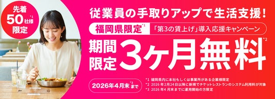 株式会社エデンレッドジャパン(所在地:東京都港区、代表取締役:天野総太郎)はこの春、賃上げを検討されている企業様に向け、実質的に従業員の手取りを増やす効果があり、賃上げの代替策・強化策として導入いただくケースが増えている食の福利厚生サービス「チケットレストラン」を、福岡県内に本社または事業所がある企業様を対象に3ヶ月間無料でご利用いただけるお得なキャンペーン