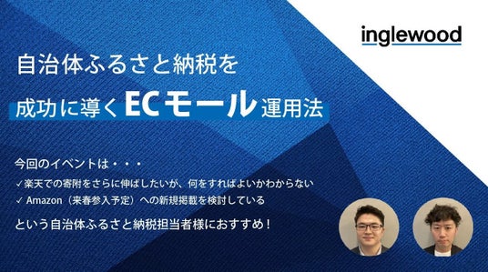 一般社団法人自治体DX推進協議会一般社団法人自治体DX推進協議会は、「2023年度ふるさと納税実態調査報告書」の発表と、書籍「なぜあの自治体にふるさと納税が集まるのか?」の出版を記念したオンライン報告会を2024年6月27日(木)AM10:00-11:30に開催いたします。このたび、ふるさと納税における「ECモール攻略」について、株式会社イングリウッド DXソリューション事業部 コンサルティングチームの丸山海斗氏、柳井了氏の登壇が決定いたしました。