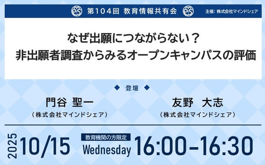 第104回となる今回は「なぜ出願につながらない?非出願者調査からみるオープンキャンパスの評価」というテーマにて教育機関の方限定で実施いたします。
