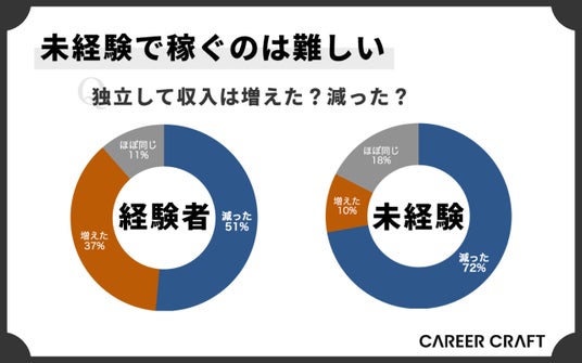 このように経験者の場合は、独立後に収入が「増えた」と答える割合が大きくなります。
