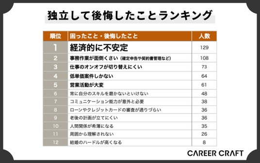 フリーランスになろうか悩んでいる人が最も気になる「独立して後悔したことランキング」。