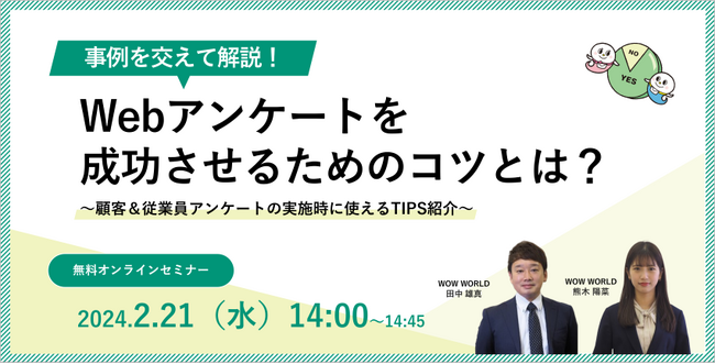 無料オンラインセミナー「事例を交えて解説!Webアンケートを成功させるためのコツとは?」2月21日(水)開催のお知らせ