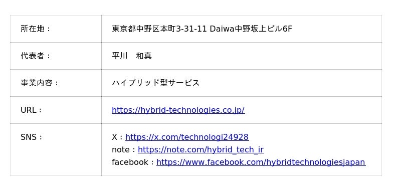 【株式会社ハイブリッドテクノロジーズ 概要】