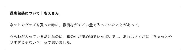これらの結果から、特典やノベルティを目的とした購買行動が、「もったいない」と感じる主要因であると推察されます。応援したい気持ちから購入する一方、消費しきれないモノが手元に残ることに葛藤が生じている状況がうかがえます。