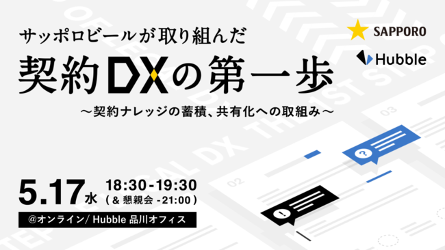 Hubble契約書管理クラウドサービス「Hubble(ハブル)」を提供する株式会社Hubble(東京都港区、CEO:早川晋平)は、2023年5月17日(水)18:30より、サッポロビール株式会社 法務部 鈴木 裕摩 氏と堀越 賢仁 氏をゲストに迎え、「サッポロビールが取り組んだ契約 DX の第一歩 ~契約ナレッジの蓄積、共有化への取組み~ 」イベントを開催いたします。