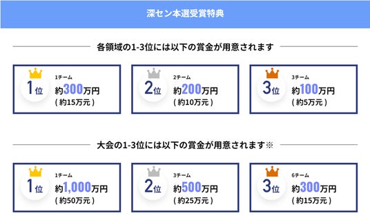 最高で合計約3,500万円の賞金があるほか、中国進出を目指す受賞者へは、深セン市より