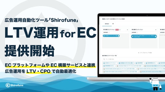 株式会社Shirofune(本社:東京都中央区 代表:菊池満長)は、広告運用自動化ツール「Shirofune」で、ECプラットフォーム/EC構築サービス等とのデータ連携機能『LTV運用 for EC』の提供を開始しました。