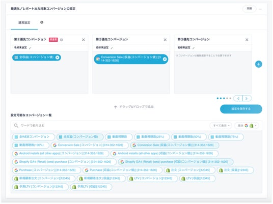 LTVの高い新規顧客獲得に繋がった成果をベースにその後の広告運用を自動で最適化単発のCPAやROAS基準では、新規顧客だけでなく、広告を出さなくても購入する可能性がある既存顧客も混在した上での短期での評価や最適化となっていましたが、ECサイトのデータから算出するCPOやLTVといった長期実績、また過去実績から導き出す予測LTVを基準にすることで、今後の実績蓄積を待たず、効果的なLTV運用をすぐに開始することができ、リピート見込みの高い新規顧客の獲得と売上増に繋がる評価や最適化を自動で行い、広告の費用対効果改善を短期間で実現します。