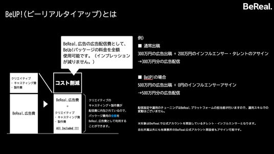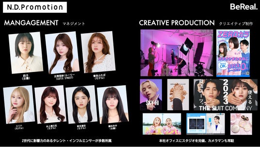 株式会社N.D.Promotion(本社:東京都渋谷区、代表取締役社長:金丸雄一、以下N.D.Promotion)は、BeReal社(本社:フランス、パリ CEO:Aymeric Roffe)が運営する写真共有アプリ「BeReal.」のコンテンツパートナー協業パッケージ『BeUP!』を販売開始いたします。