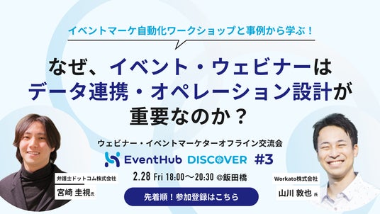 株式会社EventHub (東京都港区、代表取締役CEO:山本 理恵) が提供するシェアNo.1(※)イベント・ウェビナーマーケティングプラットフォーム「EventHub(イベントハブ)」は、ノーコード連携機能の提供を開始いたします。