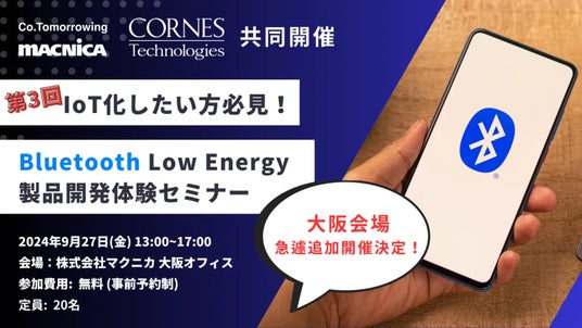 コーンズテクノロジー株式会社(本社:東京都港区、代表取締役社長 西岡和彦)は、「Bluetooth(R) Low Energy製品開発ハンズオンセミナー」を2024年9月27日(金)に大阪で開催いたします。本セミナーは株式会社マクニカ(以下マクニカ社)との共催となり、Bluetooth Low Energy(BLE)を用いた無線化を実現されたい方、最新規格の導入を検討されている方へ、Bluetoothの基礎を学びながら開発を体験できるハンズオンセンナ―です。