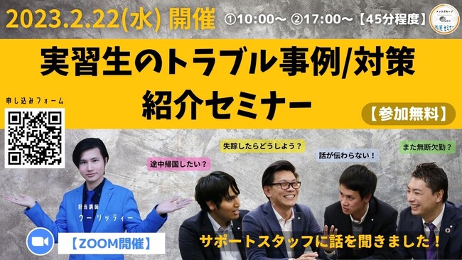 【2月22日開催】無料オンラインセミナー「実習生のトラブル事例/対策紹介セミナー」