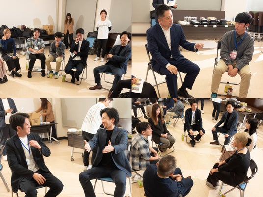 トークセッションで語られた「推し社長」の考えを聴き、今度は会場中の社長と学生が各グループに分かれて話し合うグループディスカッション。「推し社長の定義とは。学生が働きたい会社とは」をテーマに、グループに分かれて議論が行われました。和気あいあいとした温かな雰囲気の中、社長の思いや考えを直接聞くことで学生にとって大きな学びの場となりました。
