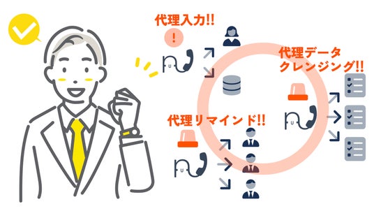 SFAへの情報入力確認、入力リマインド、データの整理、自動化設計/設定などの運用をまるっと代行し、SFA運用を助けるアシスタントサービス