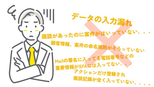 SFAを利用する際に、以下のような課題が多くの企業で発生しています。
