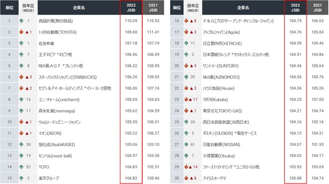 簡易版レポートでは、今回の調査対象企業306社から、TOP100と19業種別の上位ランキングを公開いたしました。総合1位は今回初めて「良品計画(無印良品)」が獲得。2位「トヨタ自動車」、3位「住友林業」。業種別傾向は、「化粧品・トイレタリー」、「薬品・医療用品」が高評価。