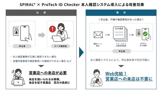 なお、申込データの管理や専用フォームの作成は「SPIRAL ver.1」でおこない、本人確認書類や顔写真の撮影は「ProTech ID Checker」でおこないます。