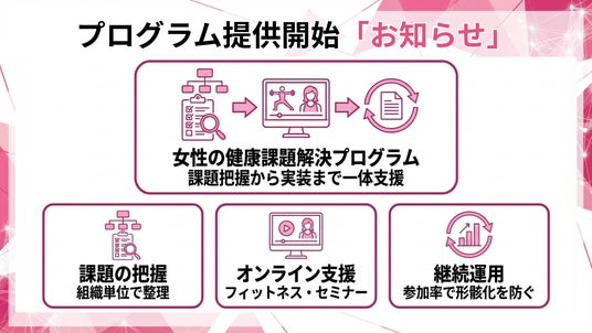 本プログラムは、課題把握→打ち手→継続運用までを一体で整備し、女性の健康課題を健康経営の実装テーマとして回すことを目的とします。