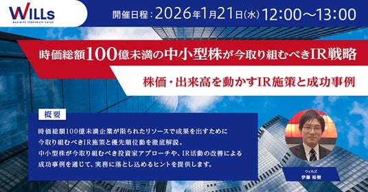 投資家と上場企業を結ぶIR支援カンパニーである株式会社ウィルズ(本社:東京都港区、代表取締役社長:杉本 光生)は2026年1月21日 (水)に
