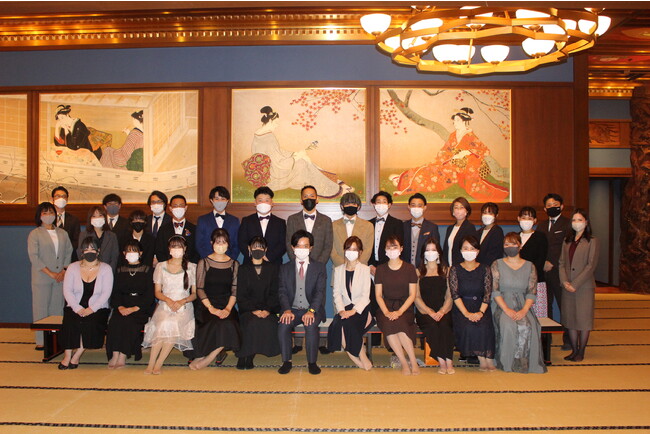 リクルートスーツを脱ぎ、ドレスと蝶ネクタイのドレスコードで、個性を尊重した内定式に