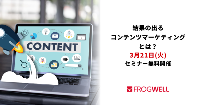 データ・プロセスのコンサルティング及びアウトソーシングサービスを提供しているフロッグウェル株式会社(所在地 : 東京都港区、 代表 : 大田宏之、以下「フロッグウェル」)は、『結果の出るコンテンツマーケティングとは?~1年で0→60万人集めたメディア運営の基本と実践、実際のケースをご紹介~』オンラインセミナーを3月21日(火)に無料開催いたします。
