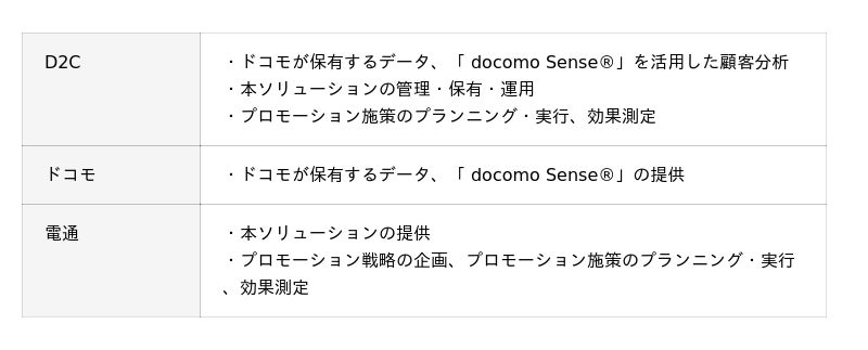 D2C、ドコモ、電通は、本ソリューションの提供を通じて企業のマーケティング課題の解決・価値最大化に寄与します。