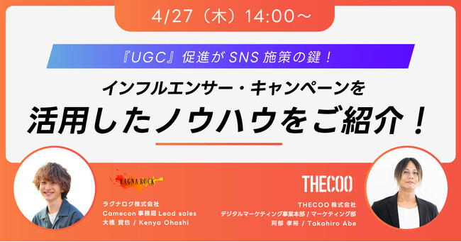 ラグナロク株式会社(本社:東京都渋谷区、代表取締役:西本 誠)は、THECOO株式会社と共同でオンラインセミナーを開催することをお知らせします。4月27日(木)14:00より、弊社担当がZoomでのオンラインセミナーに登壇いたします。