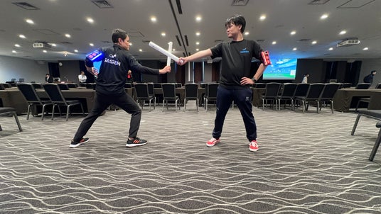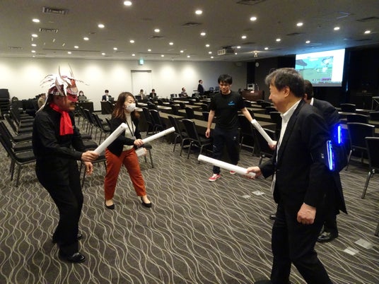 ISシンポジウムの会場内に設置された特設ブースでは、全日本サッセン協会のインストラクターが中心となり、従業員やそのご家族にCyber KASSENを体験していただきました。実際にデジタルデバイスを装着し、チーム戦やサバイバル形式でゲームに挑戦した参加者からは、「新しい運動体験が楽しかった」「家族と一緒にも楽しめそう」といった多くのポジティブな声が寄せられました。