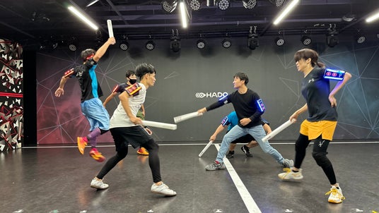 Cyber KASSENは、センサー付きデジタルデバイスを使用した集団戦特化型の新感覚スポーツで、運動と戦略を融合したエンターテインメント性の高い競技です。柔らかい武器を用いるため、安全性にも配慮されており、幅広い年齢層で楽しむことができます。