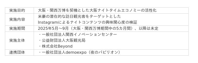 本Instagramでは、単なる情報発信に留まらず、Beyond社が抱える在日外国人コミュニティと連携し、どのようなナイトコンテンツが彼らの訪日意欲を最も刺激するか、どのような体験に価値を見出すかといったニーズの検証を目的としています。