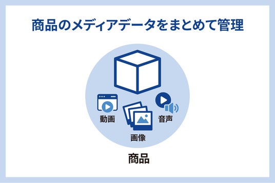 「EBISU PIM」の主な機能商品のメディアデータをまとめて管理企業内にあるさまざまなフォーマットの商品データをEBISU PIMに集約し一元管理します。画像や動画以外にも、扱う商材によっては取扱説明書の文書データや、製品に内蔵されている音声データなどもメディア情報に含まれます。EBISU PIMではそれらの情報をまとめて管理できるようにさまざまなファイル形式に対応しています。